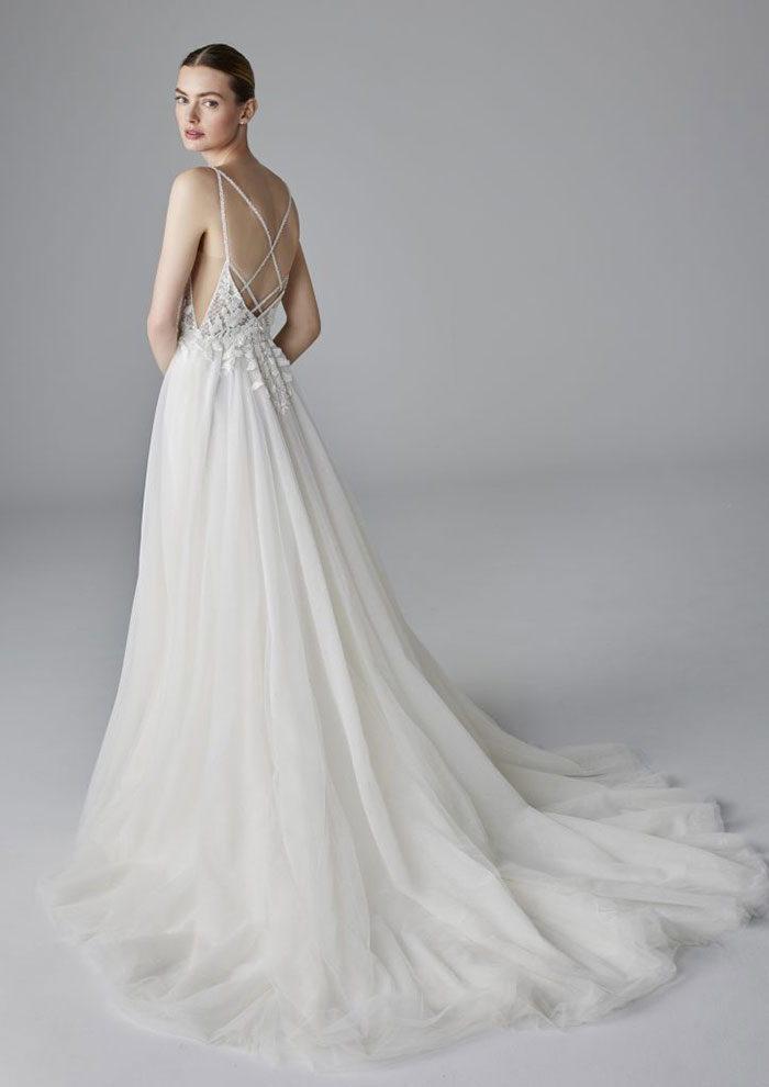 華奢なストラップが背中で交差したバックスタイルが印象的なAILIDH。